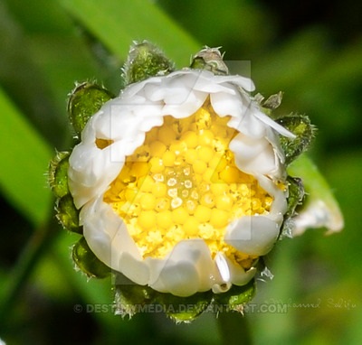 The possible candidate of “she” is a daisy. She opens the crown and bathes the rays of the sun in the daytime. After dark, she closes it and absorbing nutrition from the soil.